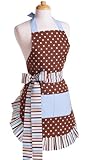 Take the monotony out of daily life by adding the exciting and sexy flare of a Flirty Apron. This apron's 2-ply construction, sturdy yet soft fabric, strong stitching and darling cut are an ideal match for all of your needs. All fabrics are uniquely designed so everyone can find their style. Flirty Aprons commits to having the highest quality aprons out there, with that perfect soft-cotton feel. Our fabric is strong, our stitching is precise, our colors won't fade and we know you won't be disappointed. Our aprons have been uniquely designed to fit all body types. Long ties fit every womanâs waist, from 20 inches up to 75 inches. With adjustable neck ties, scooped sides and a curved base, Flirty Aprons flatter every woman.- Soft designer fabric
