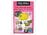 Mary Mulari Easy Reversible Waist Tie Apron Pattern- 4 different style of apron, all which tie at the waist, are reversible, and have dual personalities. "Fresh Air", side 1 has a deep center pocket for clothes pins is embellished with an applique of pins, side 2 is elegant and just right for evening wear. "Necktie Wedge" looks like you've raided your husband's closet and includes an adult and a child's version, "Tool Belt" is a short rectangle with a row of small pockets on one side and a removable one on the elegant reverse side, "Day & Night" is similar to a bistro apron with a button for attaching a towel, an finally "Coffee Cups & Cocktails". Includes instructions, diagrams, and paper patterns