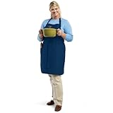 Augusta Sportswear Oversized Full Length Apron With Pockets. 4360, 65% polyester/35% cotton twill, 1-inch wide neck strap with slider adjustment, 1-inch wide extra-long waist ties reinforced at stress points, Two patch pockets, Rounded bottom with self-fabric binding 26" x 32"- 65% polyester/35% cotton twill.