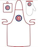 Our fan-friendly sports apron set is what every backyard chef will want to use at their next tailgating even. This barbecue apron will keep you clean no matter how messy it gets. These white aprons feature your favorite team's name and logo. Also has matching trim and straps. The set also includes a matching mit and potholder. The apron is 100% cotton, 34" long and 29.5" wide.- Officially licensed by the MLB
