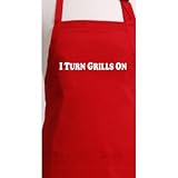 Features: -Men's "I Turn Grills On" funny, whimsical apron. -Red color. -Material: 65pct Polyester and 35pct cotton. -Thick 1-ply material. -Features 3-pockets. -Detailed embroidered phrases. -Adjustable neck strap. -Play on words themed apron. -Durable fabric. -One size fits most. -Won't fade or tear.- Durable heavyweight fabric