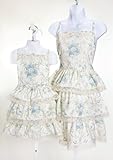 Mother and Daughter will look so elegant in this 3 lace edged tiers apron with dainty blue flowers and vine arches. So perfect for hostessing that Sunday Brunch or family dinner. Both aprons have nice long waist ties andadjustable neck straps. Easy care 60% Cotton/40% Polyester Machine wash and dry. You may add and delete items to this set in the shopping cart.Read Full Product Specification here
