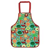 Ulster weavers five a day childs pvc apron (phthalate free) that depicts all the fruits and vegetables that children should eat with front pocket. Greenish blue background with red neck strap. Wipe clean with a damp cloth. Size: 22.44-inch x 16.54-inch- Size is 22.44-inch x 16.54-inch