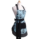 WO-10018 Features: -Apron.-100pct Cotton material.-Ocean masquerade theme.-Fits all sizes.-Solid black inner lining.-Ties in the front or the back. Color/Finish: -Aqua color with damask motif. Collection: -Women's Original collection.- High Quality Aprons by Flirty Aprons